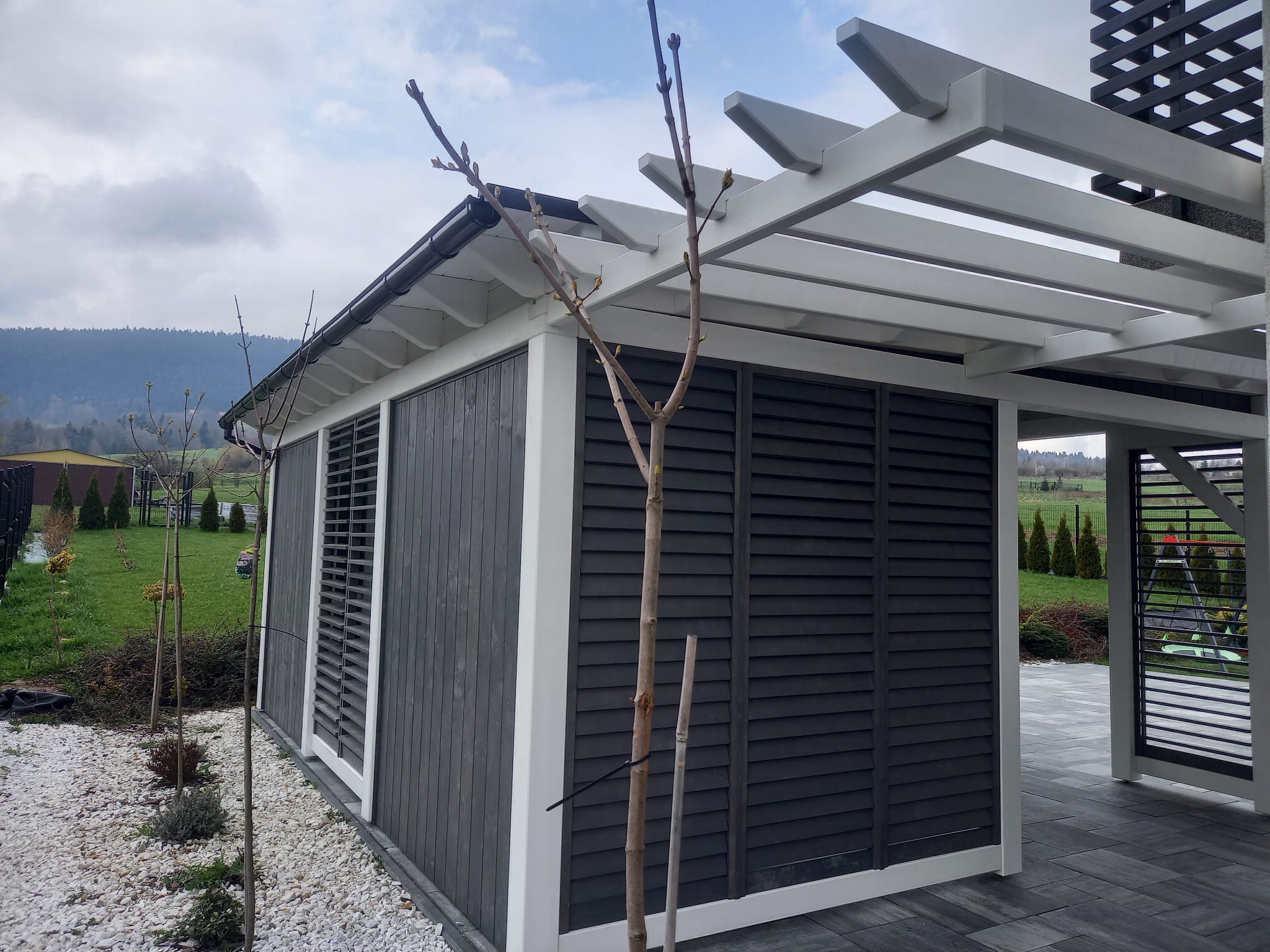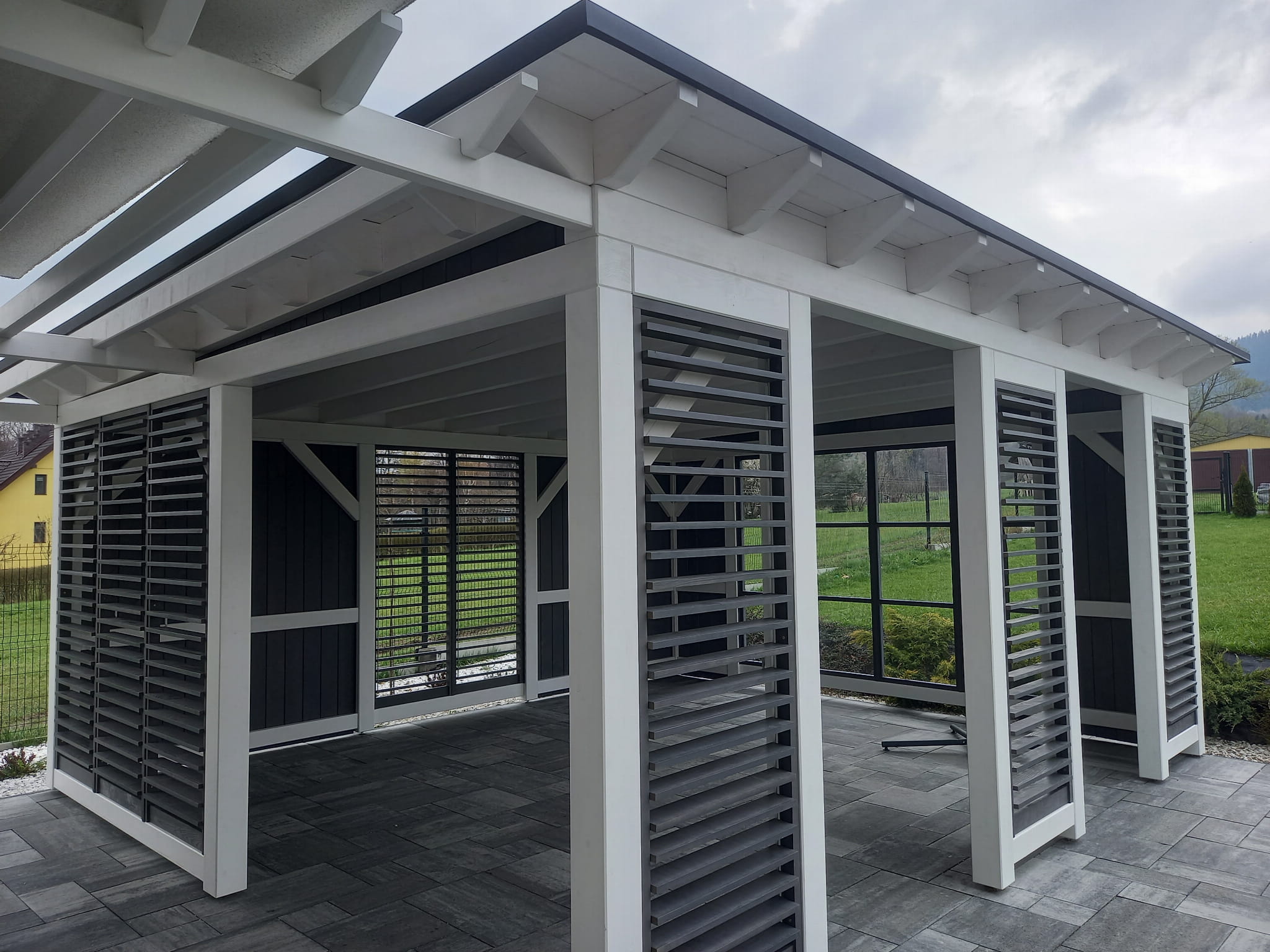 | Wandverkleidung | Lamellen, Verglasungen, Vollwand |