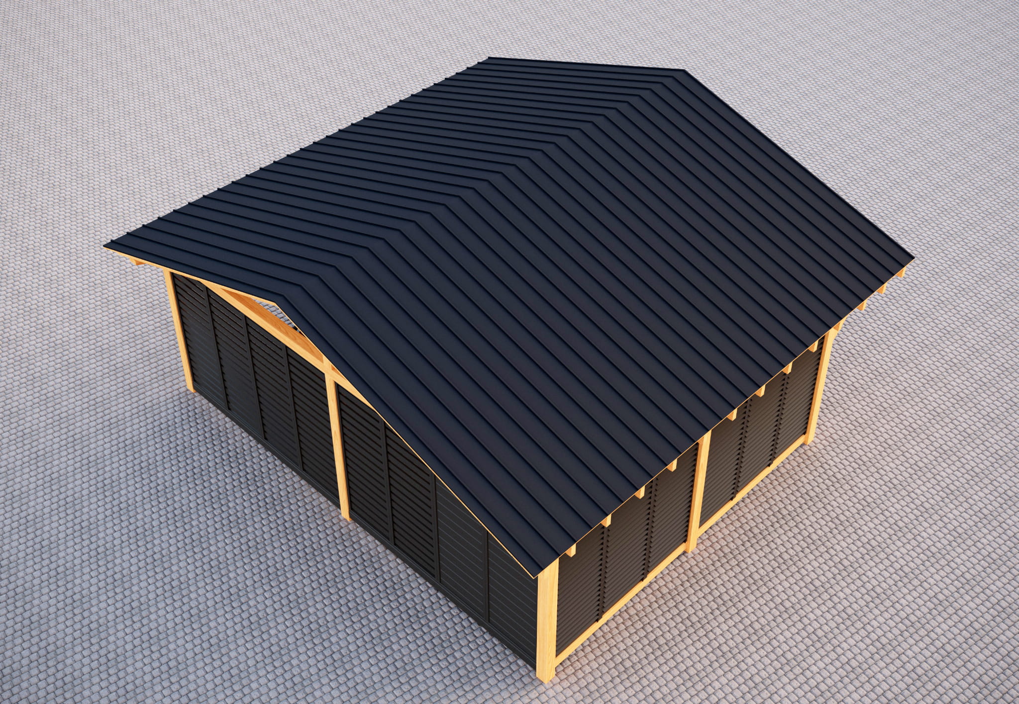 Walmdach-Unterstand 4×5 m mit Wandverkleidung – funktional und elegant