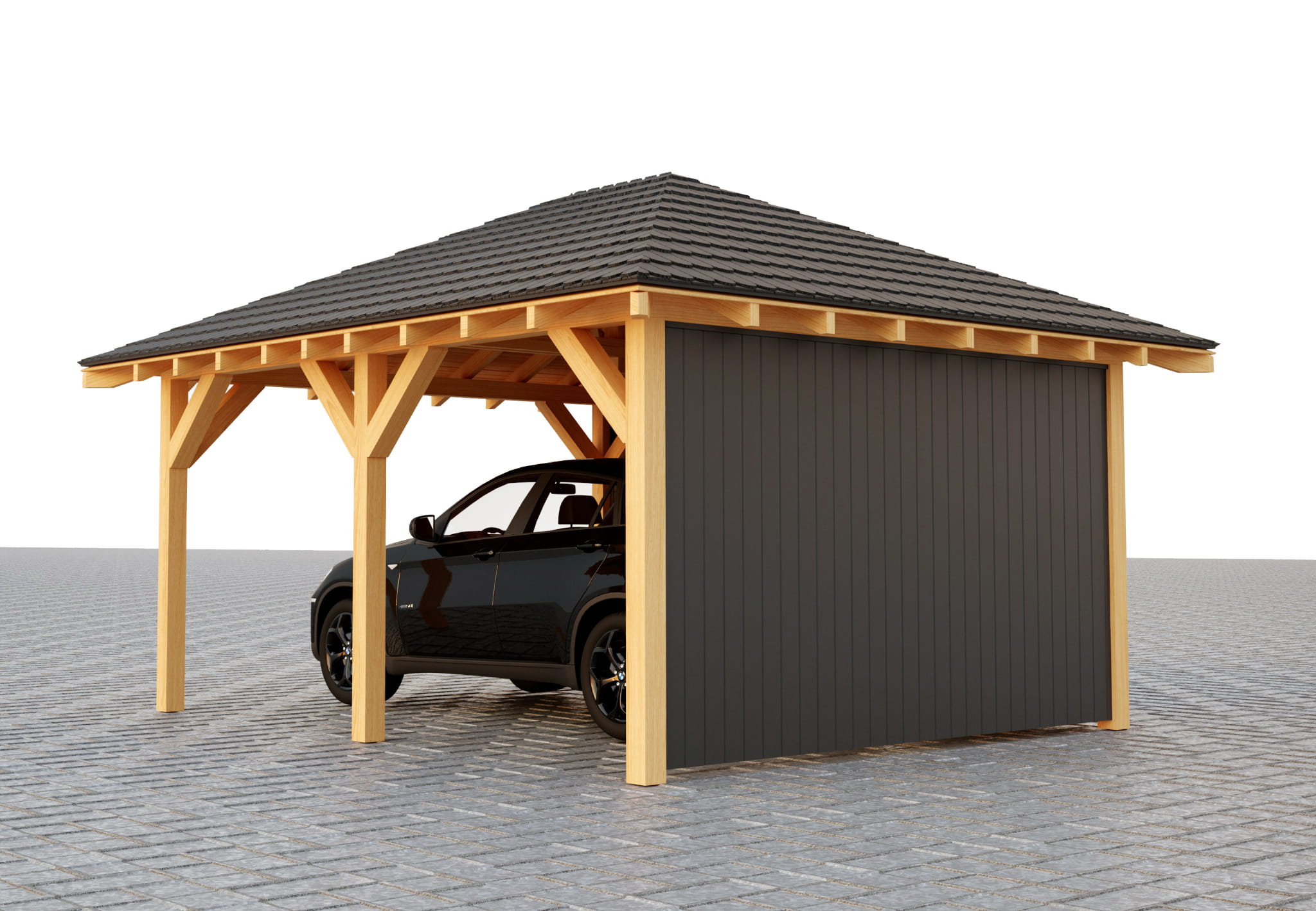 Jede unserer Holzkonstruktionen kann nach Maß gefertigt und an Ihre Erwartungen angepasst werden – sowohl in Bezug auf die technischen Parameter als auch auf die Ästhetik. Dadurch wird der Carport perfekt auf Ihre Bedürfnisse und den Charakter des Raumes, in dem er montiert wird, abgestimmt.